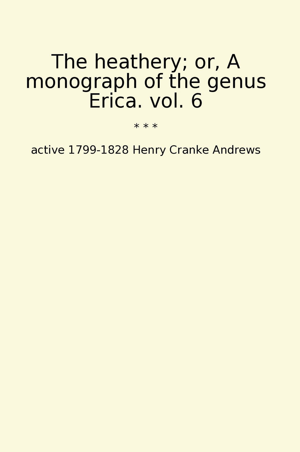 The heathery; or, A monograph of the genus Erica, Vol. 6 is a classic book written by Henry Cranke Andrews, an author and writer active between 1799 and 1828. This volume is part of a larger series dedicated to the study of the genus Erica, commonly known as heather, a group of plants that includes over 800 species.