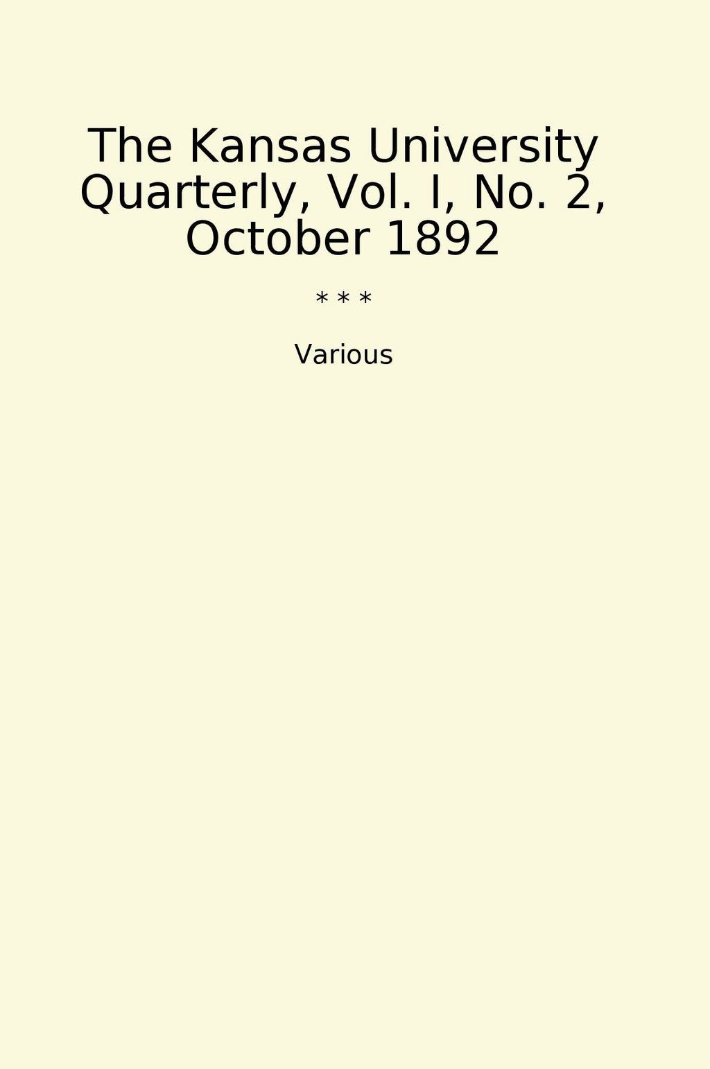 The Kansas University Quarterly, Vol. I, No. 2, October 1892