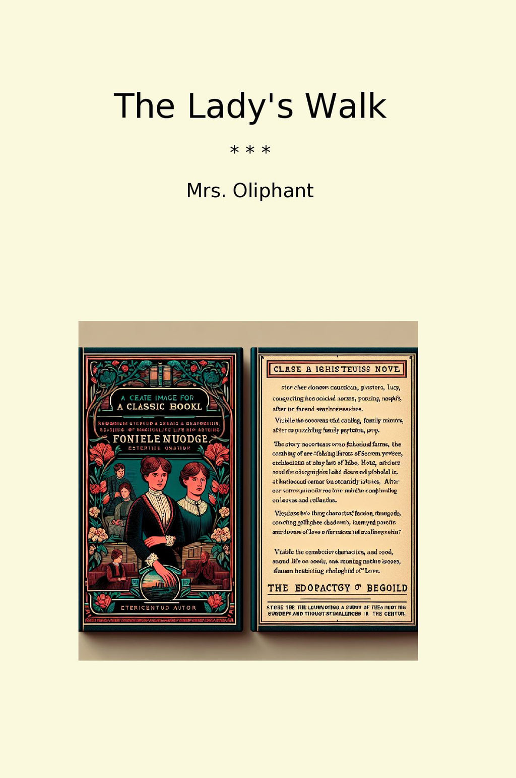 The Lady's Walk is a classic novel written by Mrs. Oliphant, a renowned English author and writer. The story follows the lives of two sisters, Lucy and Phoebe, who are left to navigate their way through the trials and tribulations of life after their father's death. As they come of age, they must confront societal expectations, family secrets, and the complexities of love and relationships. Mrs. Oliphant intricately weaves together themes of class, gender, and morality in a compelling and thought-provoking narrative that keeps readers engaged from start to finish. With its vivid characters and insightful storytelling, "The Lady's Walk" remains a timeless exploration of human nature and the challenges of womanhood in the 19th century.