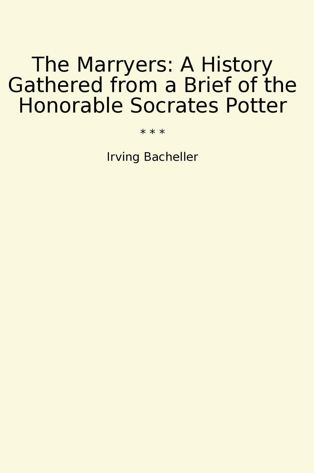The Marryers: A History Gathered from a Brief of the Honorable Socrates Potter