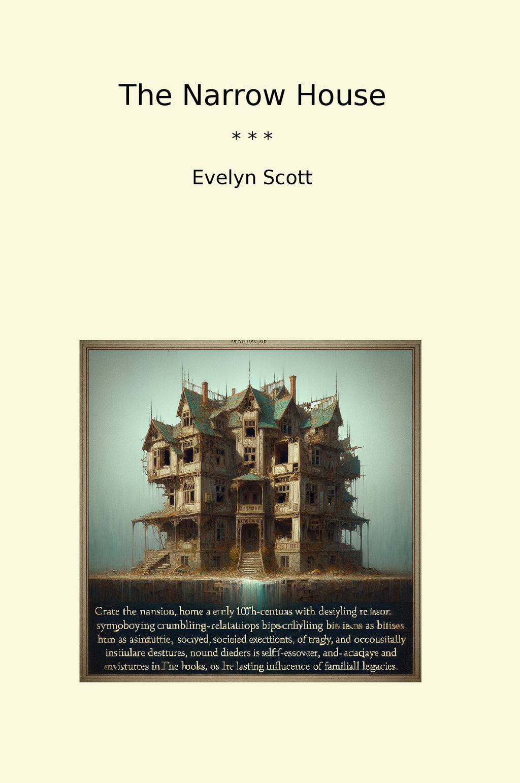 "The Narrow House" by Evelyn Scott is a compelling exploration of the complexities of family dynamics and the human condition set in the early 20th century. The narrative follows the lives of the privileged but deeply troubled Chisom family, who reside in a decaying mansion that serves as a metaphor for their crumbling relationships. Scott’s prose is both lyrical and piercing, providing vivid imagery of the house and its inhabitants. The characters are richly developed, each harboring their own secrets and desires that ultimately lead to both tragedy and moments of illumination. Themes of isolation, societal expectations, and the search for identity resonate throughout the story, as the narrow confines of the house mirror the restrictions imposed upon the characters. With its intricate structure and profound insights, "The Narrow House" remains a thought-provoking reflection on the complexities of life and the enduring impact of family legacies.