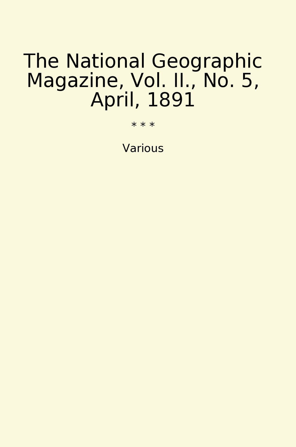 The National Geographic Magazine, Vol. II., No. 5, April, 1891