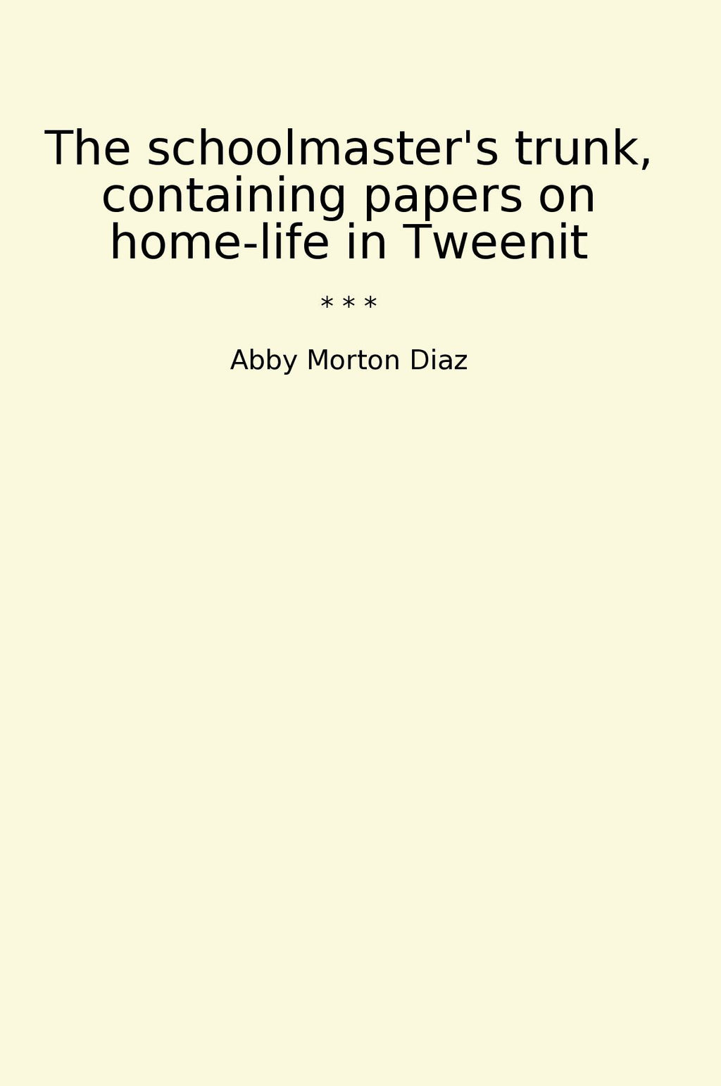 "The Schoolmaster's Trunk: Papers on Home-Life in Tweenit" is a classic book written by Abby Morton Diaz. This collection of papers takes readers on a journey into the world of Tweenit, a fictional town in New England. Through the vivid descriptions and engaging storytelling, Diaz provides a detailed account of the everyday lives of the people in Tweenit.