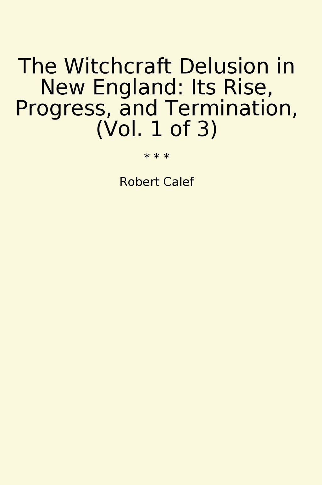 The Witchcraft Delusion in New England: Its Rise, Progress, and Termination, (Vol. 1 of 3)