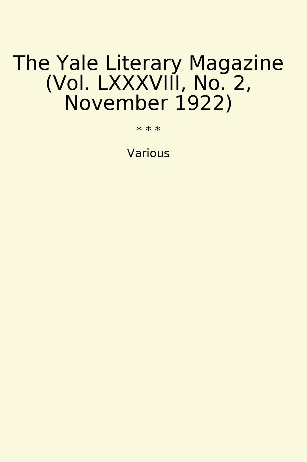 The Yale Literary Magazine (Vol. LXXXVIII, No. 2, November 1922) is a classic collection of poetry, prose, and illustrations showcasing the talents of various writers and artists. This edition features a diverse range of themes and styles, offering readers a glimpse into the literary landscape of the early 20th century. From poignant reflections on the human experience to evocative descriptions of nature, each piece in this volume is crafted with skill and creativity. The magazine provides a platform for emerging voices as well as established talents, making it a valuable addition to any literary enthusiast's collection. With its timeless storytelling and thought-provoking content, The Yale Literary Magazine continues to captivate readers and inspire writers generations after its initial publication.