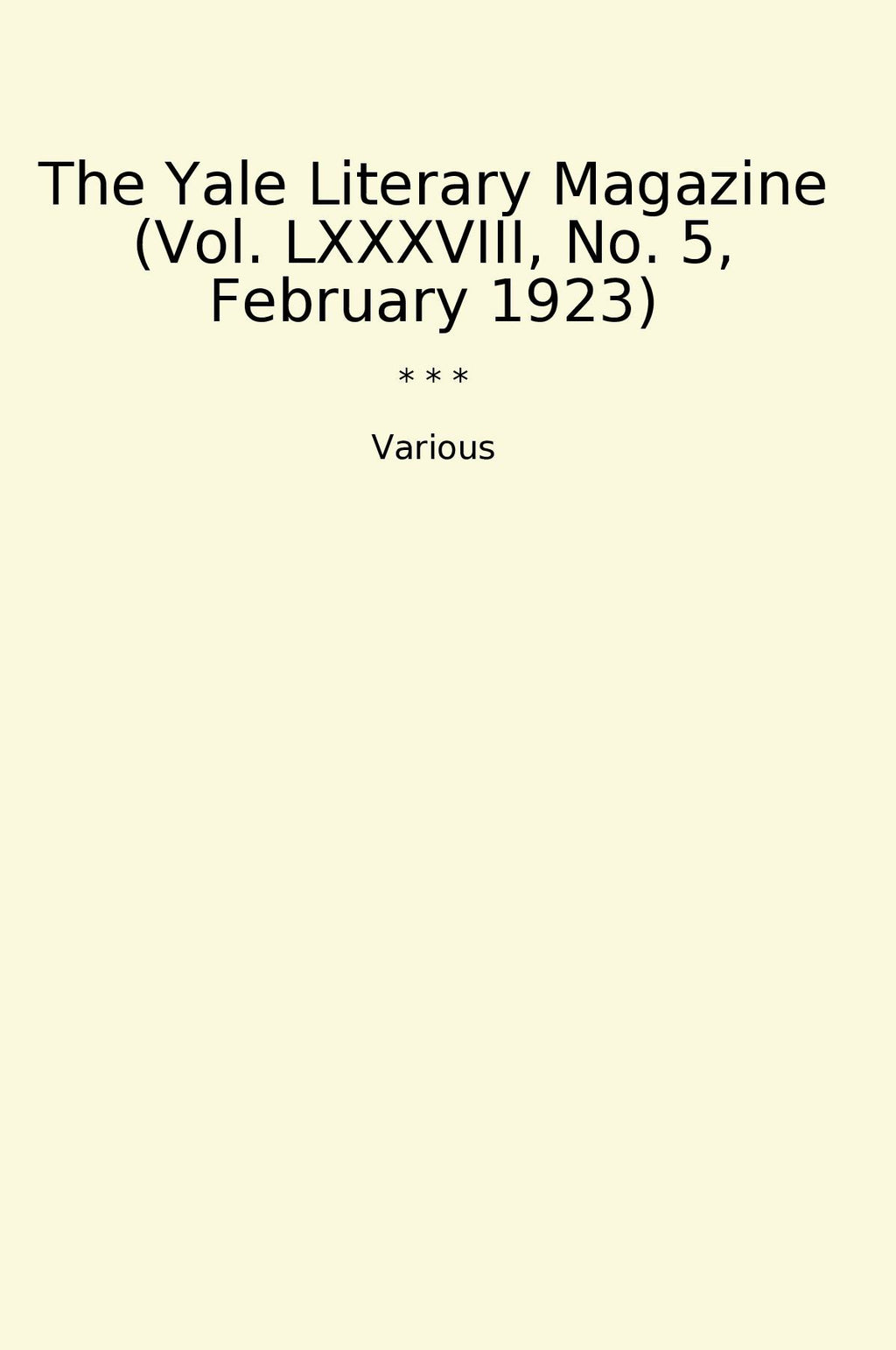 The Yale Literary Magazine, published in February 1923, is a classic collection of thought-provoking essays, poetry, and short stories from various authors and writers. This volume showcases the diverse talents of the contributors, offering readers a glimpse into the intellectual and creative world of the early 20th century. From intimate reflections on life and love to gripping narratives of adventure and exploration, this literary magazine offers a rich tapestry of emotions and experiences. The captivating prose and lyrical poetry found within its pages will transport readers to a bygone era, inviting them to engage with the timeless themes and universal truths explored by the talented writers of the time.