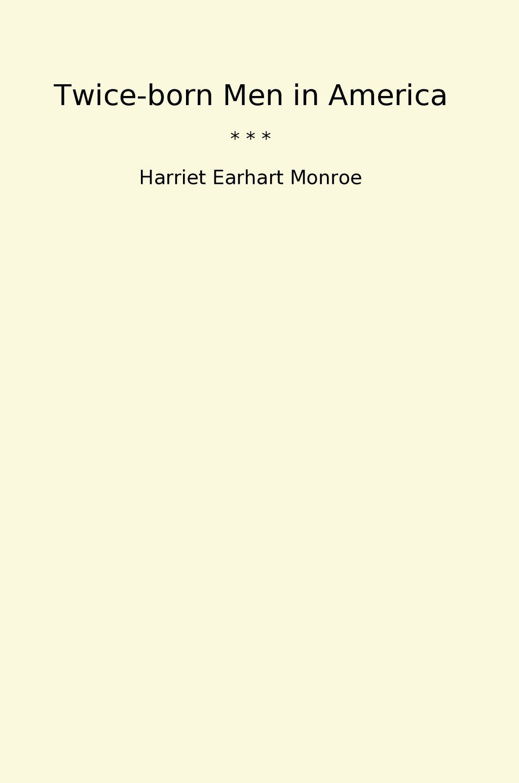 "Twice-born Men in America" by Harriet Earhart Monroe is a profound exploration of the spiritual and psychological transformation experienced by individuals who have faced significant adversity. Monroe delves into the lives of those who have undergone a p