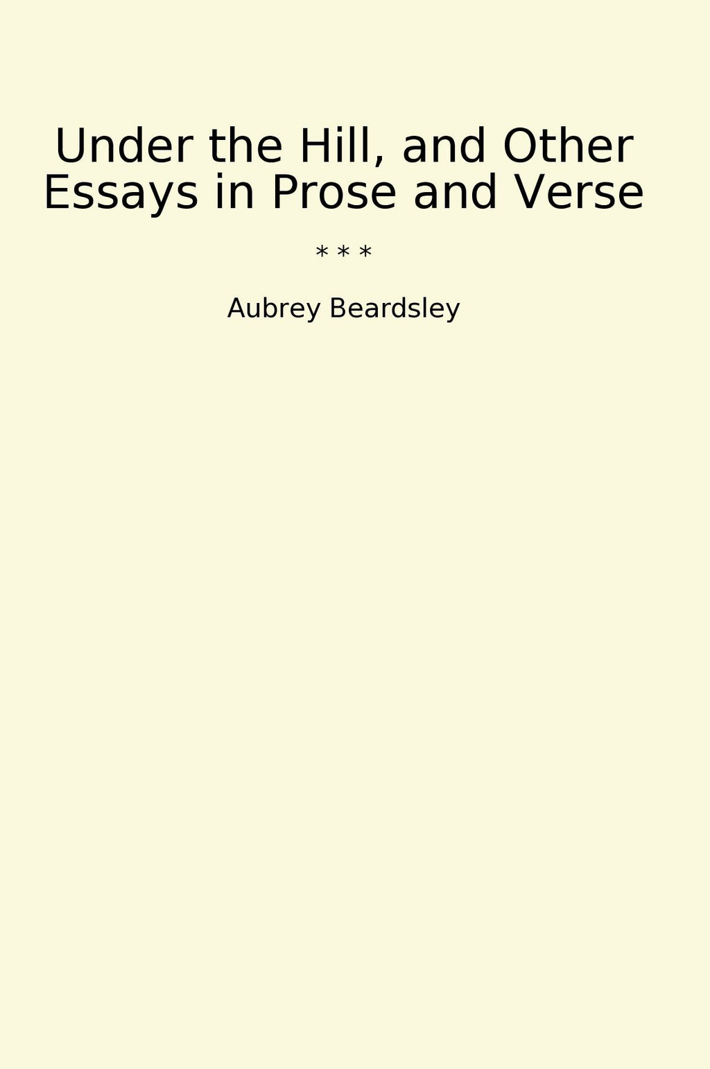 Under the Hill, and Other Essays in Prose and Verse