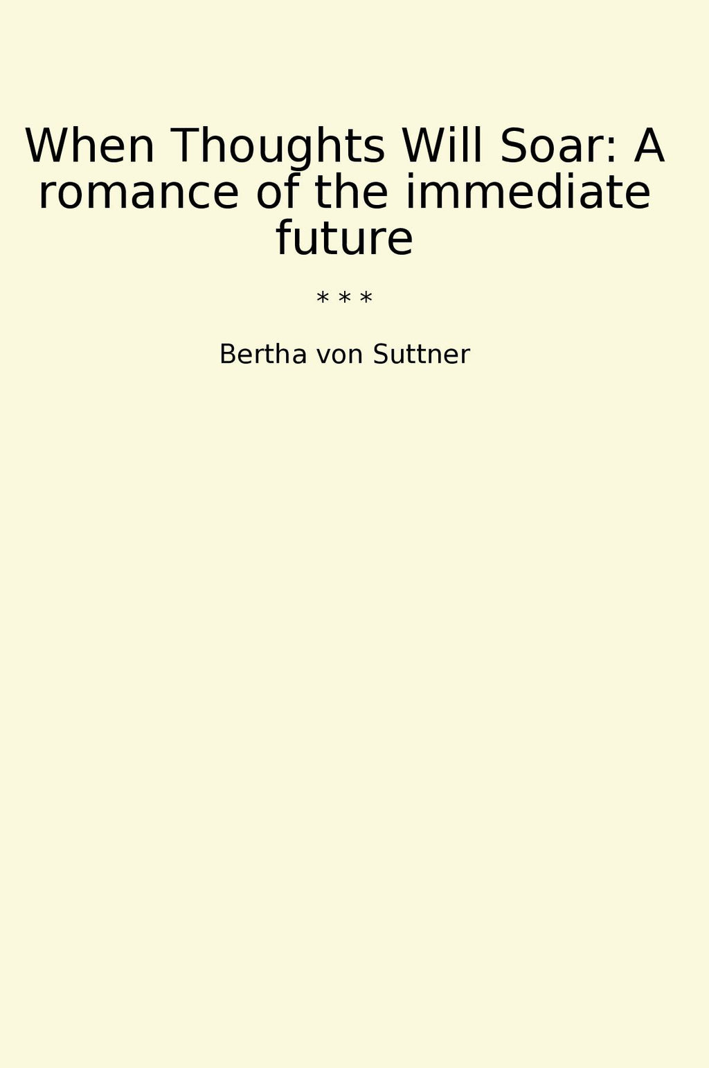 "When Thoughts Will Soar" is a classic book by renowned author Bertha von Suttner, known for her influential works on peace and romance. Set in the immediate future, the novel tells the story of a love affair that transcends boundaries and challenges societal norms. The book delves into themes of love, technology, and the possibilities of a utopian future, offering a thought-provoking and engaging narrative.