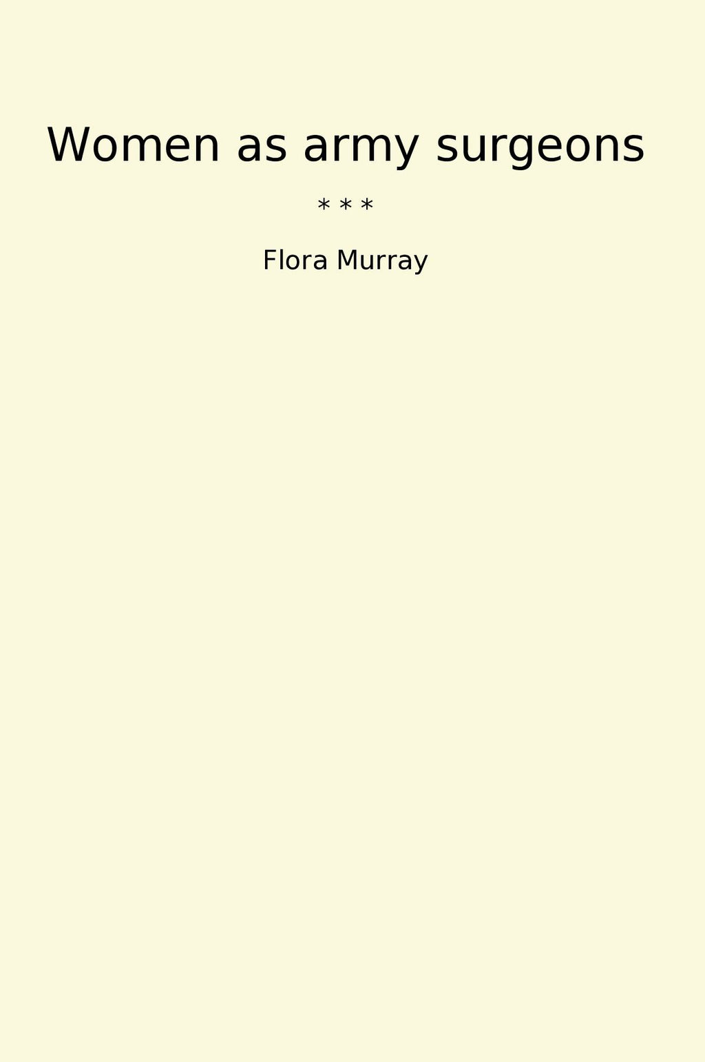 Women as army surgeons is a classic book written by Flora Murray, a prominent author and writer. In this book, Murray tells the remarkable story of female surgeons who served in the British Army during the First World War.